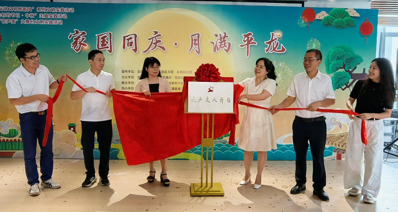 这个颇具巧思的名称,“花”寓意花都地域特色和社区如花绽放,“声”体现传播党的声音与居民心声与表达,“麦”象征传播载体,而其粤语谐音“花生米”更是亲切接地气,拉近了与居民的距离。“花声麦”大舞台将聚焦“展示、互动、服务”三大功能,常态化开展“平龙宣讲汇”“平龙书香韵”“邻里才艺秀”三大类活动,致力让每一位居民都能“站上舞台当主角”,共同建设有温度、有活力的新时代社区。未来,“花声麦”大舞台将延伸拓展到其他文明实践阵地,凝聚社会各方力量和资源,广泛传播党的声音和展现群众心声与表达,打造成为属于花都人自己的大舞台,推动花都“麦”上文明新高度。